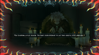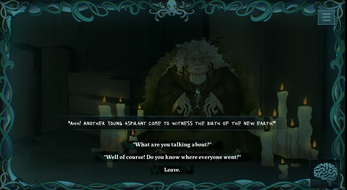 After waking up in the cargo hold of a boat surrounded by corpses, explore the environment to glean information about the cult to speak with the cult members without upsetting them to obtain key items.